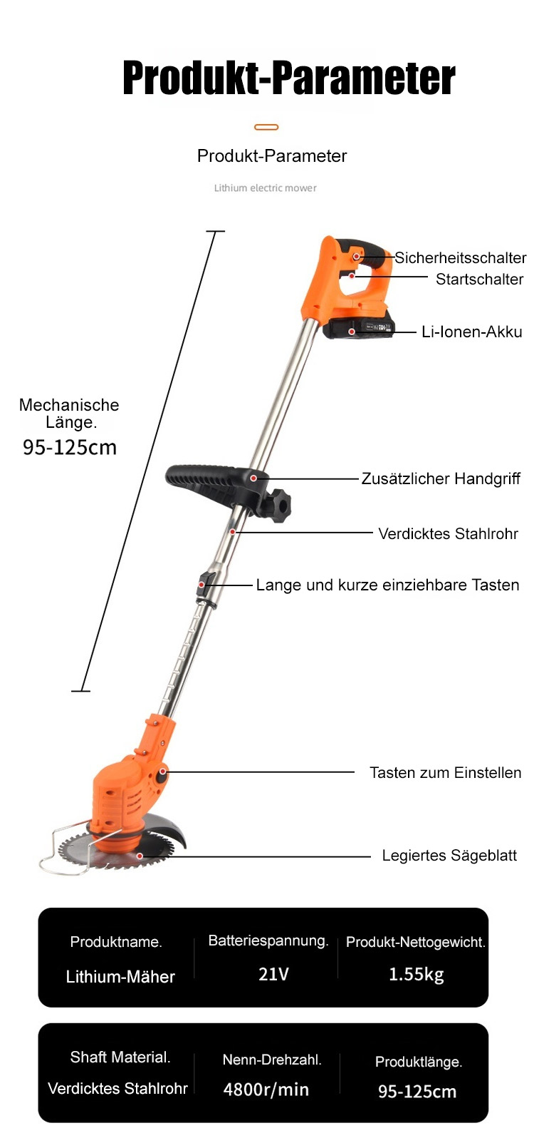 [Full Copper Motor] Tragbarer Handrasenmäher