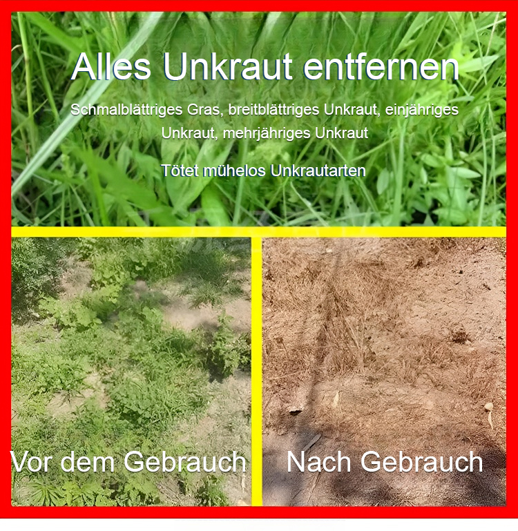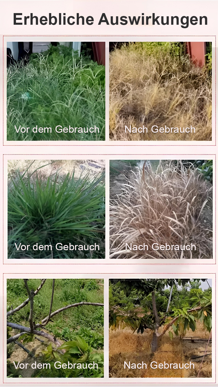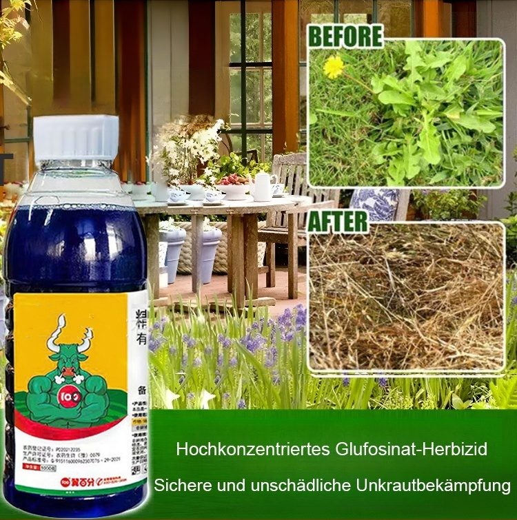 Gründliches Unkrautentfernen, schadet dem Boden nicht, eine Flasche reicht für 3-5 Morgen Land.