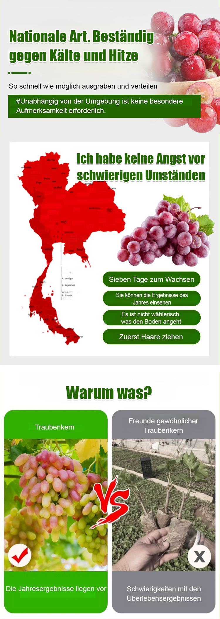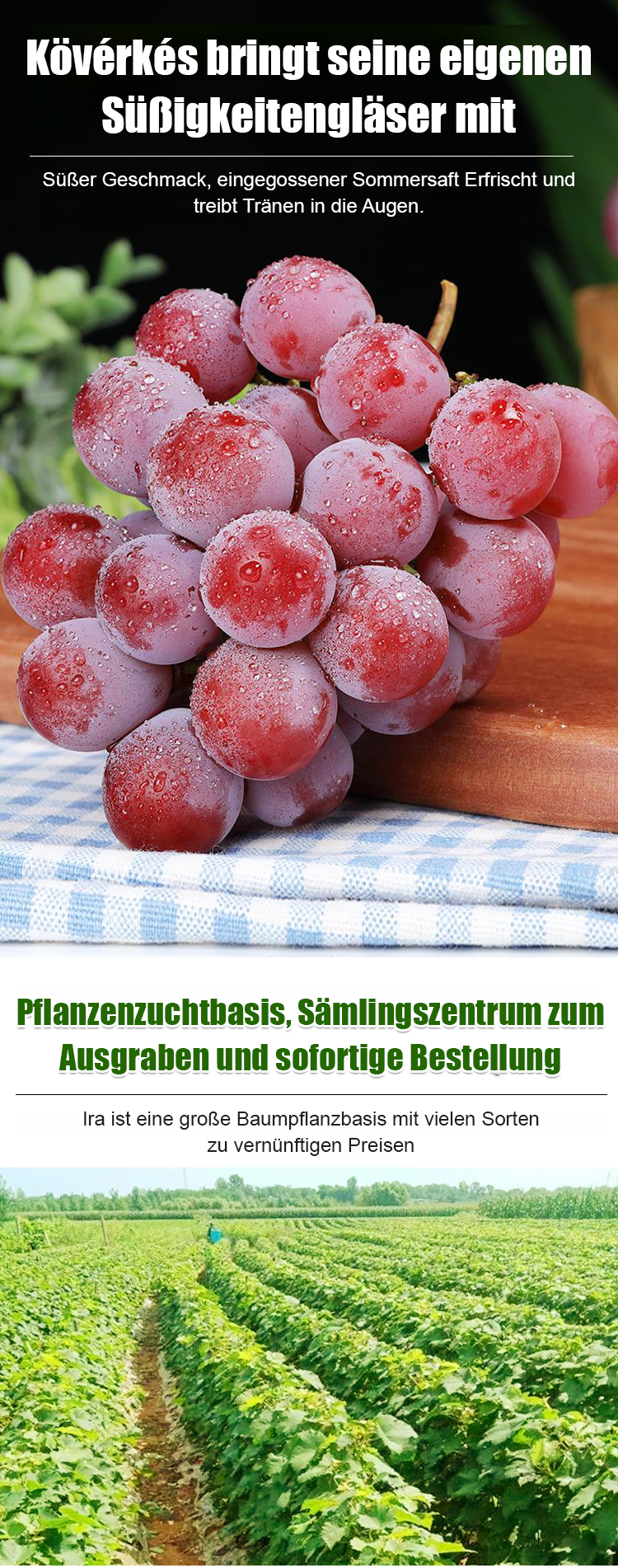 💁♀️Diese Frucht stammt von einer einheimischen, wurzelechten Sorte aus Binchuan, Dali, Yunnan, und hat 1180 Tage lang auf natürliche Weise Zucker angereichert. Temperaturschwankungen von über 21 °C haben ihr einzigartiges Aroma gefördert. 🍇Das Fruchtfleisch ist prall und saftig mit einer dünnen, zarten Schale. Jeder Bissen ist ein Genuss: das Aroma von Roséwein und der süße Geschmack von Litschi – ein reichhaltiges und intensives Geschmackserlebnis, das die Geschmacksknospen verwöhnt! ✅Diese ausgewählte Sorte ist sowohl kälte- als auch hitzebeständig und keimt bereits nach 7 Tagen. Die Frucht ist reich an Nährstoffen und eignet sich daher ideal für den Anbau im eigenen Weinberg!