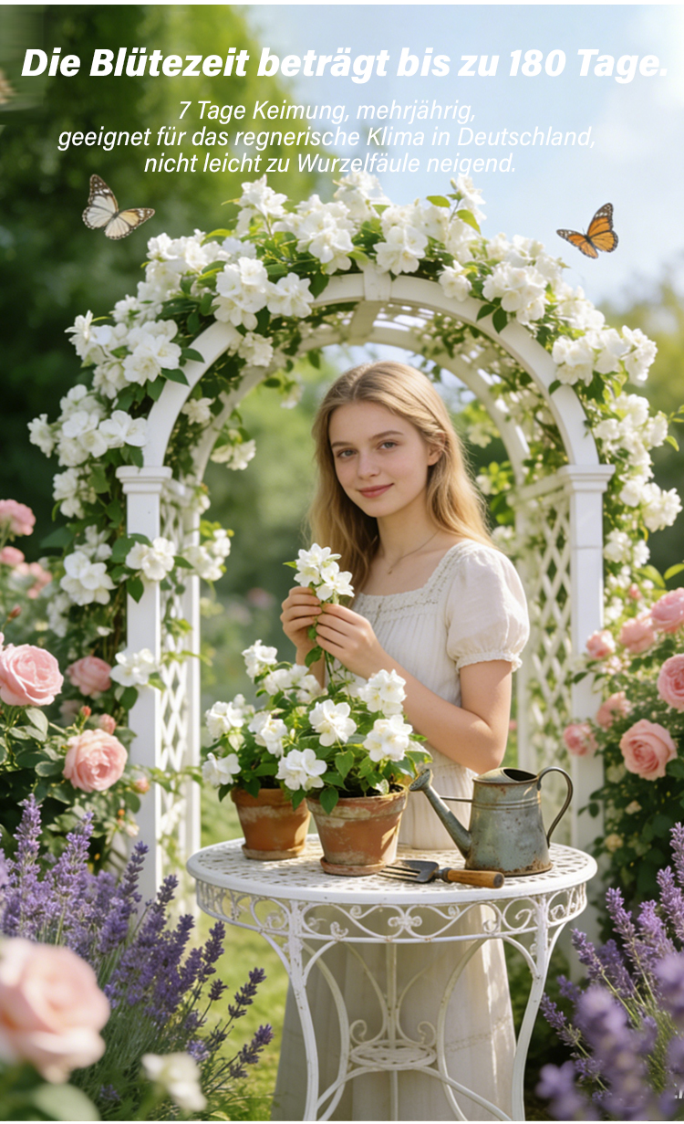 ✨Samen des gefüllten Tigerjasmins, der in allen vier Jahreszeiten blüht! Diese kostbare Blume, auch bekannt als „Gartenparfüm“, blüht das ganze Jahr über, 🌹verströmt einen intensiven Duft und ist kälte-, hitze-, wind- und regenfest. Sie ist anspruchslos, was den Boden angeht, und verträgt auch feuchte Standorte. 😀Selbst Anfänger ohne jegliche Erfahrung können sich so ganz einfach einen duftenden Garten anlegen!