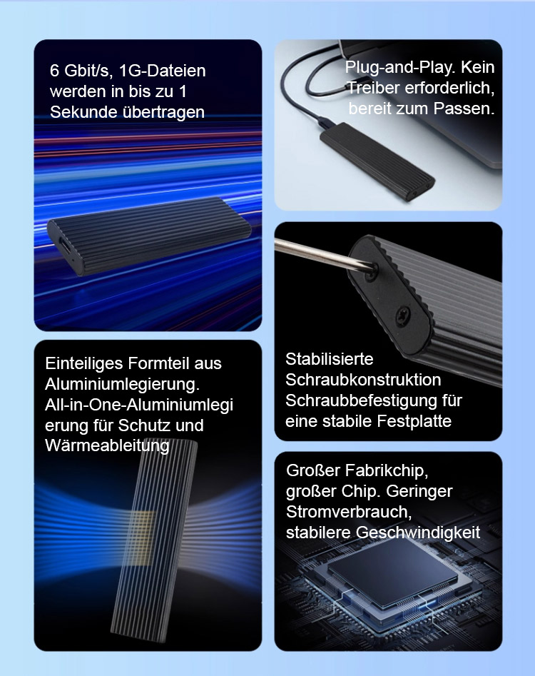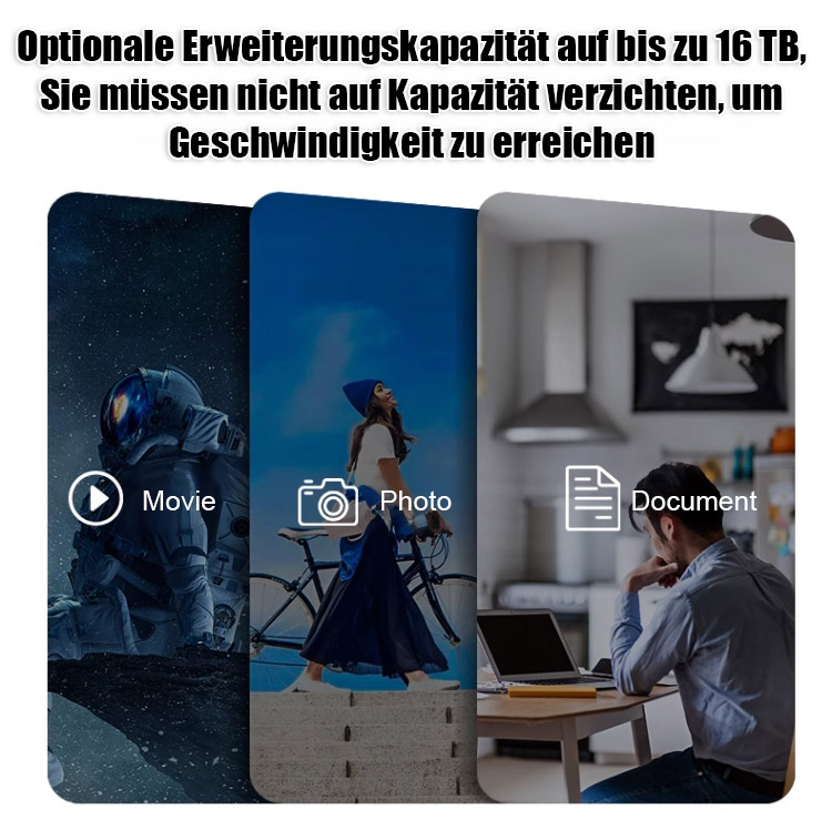 🔥Dieses multifunktionale Laufwerk vereint extrem hohe Speicherkapazität, ultraschnelle Übertragungsgeschwindigkeiten und maximale Mobilität. Praxistests belegen maximale Übertragungsgeschwindigkeiten: 1 GB an Dateien werden in nur einer Sekunde übertragen! Mit einem Durchsatz von 6 Gbit/s ist es mehr als zehnmal schneller als herkömmliche mechanische Festplatten! 👍Die enorme Speicherkapazität von 16 TB bietet Platz für Zehntausende HD-Filme, Millionen von Fotos, Office-Dokumente und Spielstände.
