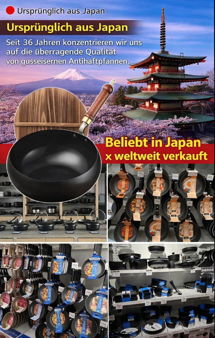 👍50% Rabatt!Japanische Gusseisenpfanne.Zu den ersten 100 gratis Pfannenwender!